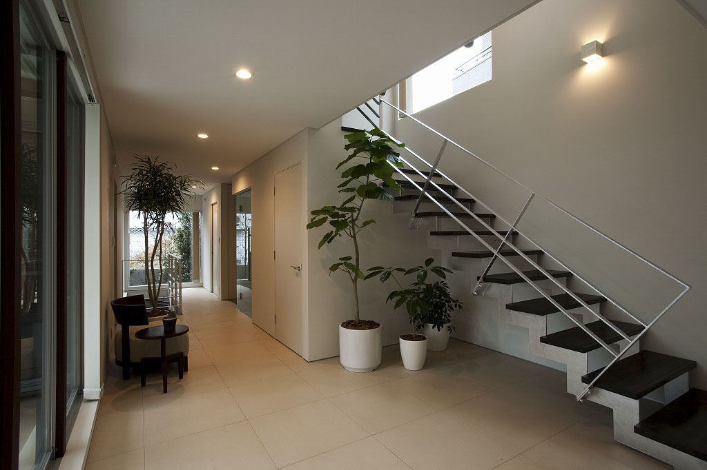 2階パティオのバルコニーが内外の空間を一体化しています。